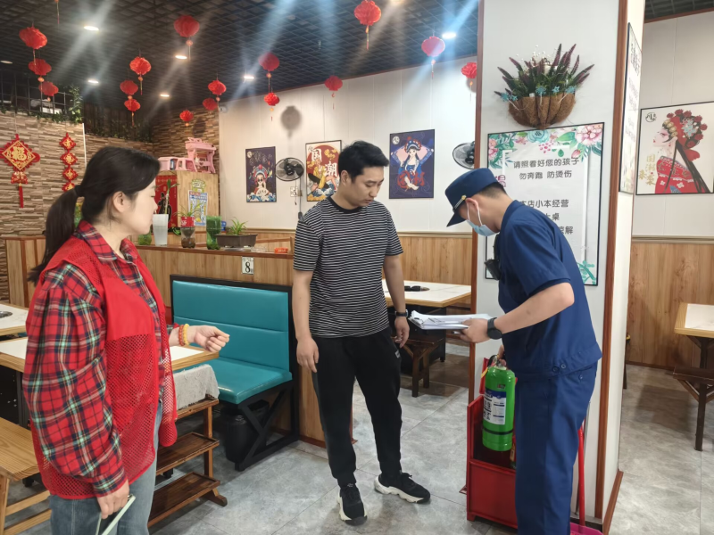 检查中,社区工作人员与消防大队工作人员深入辖区内门店,重点对消防器材的配备和灭火器是否处于正常使用范围、安全通道是否畅通、是否落实消防安全责任制、员工是否掌握消防基础知识等情况进行了详细检查。同时,社区工作人员耐心地向店面负责人、员工宣传讲解火灾隐患和防火常识,使他们对消防安全有了较全面地了解,增强了消防安全意识,增强了自防自救能力。