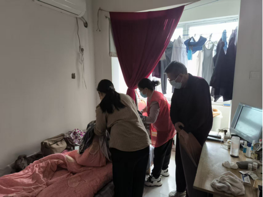 上门服务时,工作人员与志愿者轻手轻脚进入老人房间,先将老人的被褥、枕头小心搬至通风处晾晒,随后更换脏污的床单与枕套。整理过程中,大家格外注重细节:铺平床单时反复调整边角,确保无褶皱;叠放被褥时按老人习惯的方式整理,方便老人取用。同时,志愿者还会检查床垫是否有破损、床底是否堆积杂物,及时帮老人清理,避免安全隐患。