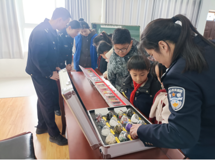 为了让抽象的知识变得直观可感,活动现场设置了仿真毒品模型展示区,这也是本次活动的重点环节。当仿真毒品模型出现在同学们面前时,立刻引起了大家的围观和讨论。这些模型高度还原了海洛因、冰毒、摇头丸、K粉以及各类新型毒品的真实外观,色彩、形状都与实物极为相似。在社区工作人员和民警的引导下,同学们有序地近距离观察,仔细聆听关于每一种毒品外观特点、成瘾机制和严重后果的讲解。“原来摇头丸长得像糖果一样,太有欺骗性了!”同学们在观察中不时发出感叹,对毒品的伪装性有了更深刻的认识。