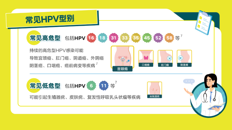HPV的中文名是「人乳头瘤病毒」,可存活于皮肤和黏膜上,感染部位包括口腔、咽喉、阴茎皮肤、外阴、肛门、阴道、宫颈和直肠。目前已知有200多种型别,根据致癌性的不同分为高危型别和低危型别。