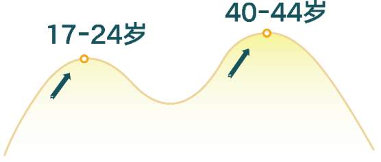 2.一项中国多中心、基于人群的研究显示:中国女性HPV感染率按年龄呈“双峰” 分布:第一个高峰在“17-24岁”,第二个高峰在“40-44岁”。