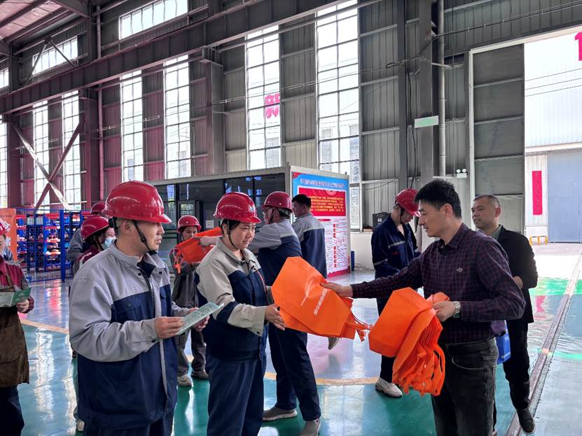 在第22个《职业病防治法》宣传周来临之际,4月25日上午八公山区防疫中心走进辖区企业,开展职业病防治宣传活动。工作人员现场向劳动者发放职业病防治手册,讲授劳动过程中的职业防护措施,解读《职业病防治法》、《国家职业病防治规划(2021-2025年)》、职业心理健康、尘肺病救治救助等法律法规和相关专业知识。