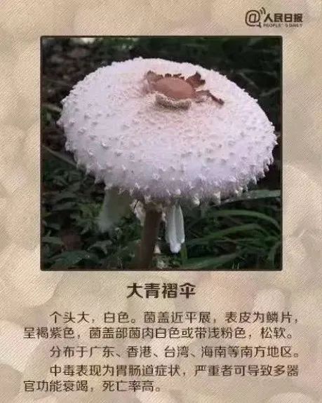 这是大青褶伞,是淮南市常见的一种野生毒蘑菇。青褶伞一般长在山区、公园、菜地等地方,是离人群较近的毒蘑菇之一,是淮南市及我国毒蘑菇中毒事件中最常见“主角”,又被网友戏称为“ICU菇”。青褶伞食用后会引起严重的胃肠道症状,包括恶心、呕吐、腹痛、腹泻等。