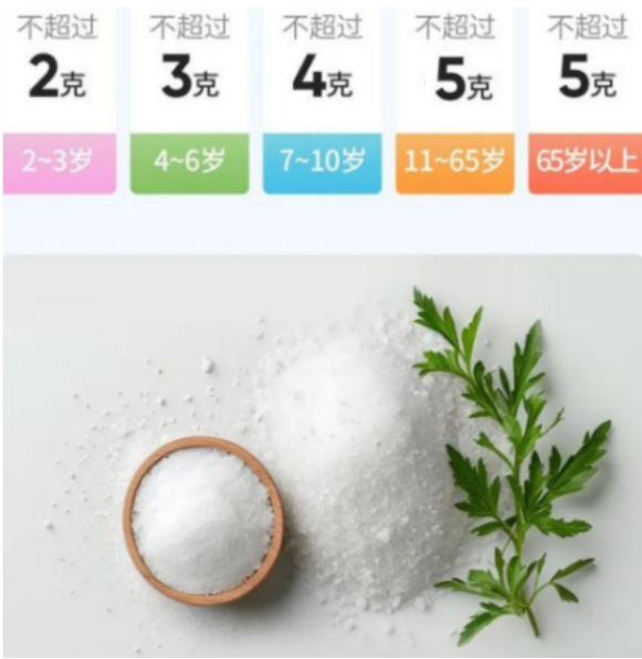 《2015年中国成年人慢性病与营养监测》数据显示,每标准人日烹调盐摄入量为9.3g,世界卫生组织推荐每天食盐摄入量<5g。《中国居民膳食指南(2022)》推荐健康成人每人每天食盐摄入量不超过5g。2-3岁幼儿摄入量不超过2克,4-6岁幼儿不超过3克,7-10岁儿童不超过4克。