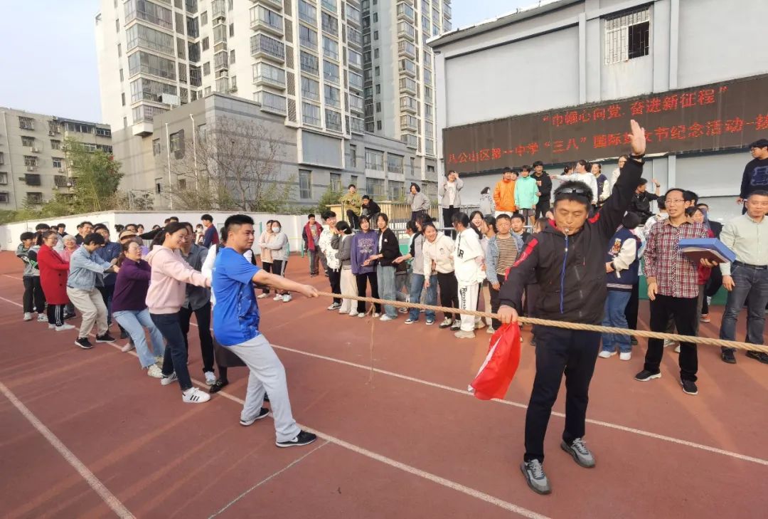 为进一步凝心聚力,丰富广大教职工的文化生活,积极营造健康、快乐、和谐的节日氛围,在第113个“三八”国际妇女节来临之际,八公山区第一中学举行了“巾帼心向党 奋进新征程”拔河比赛活动。