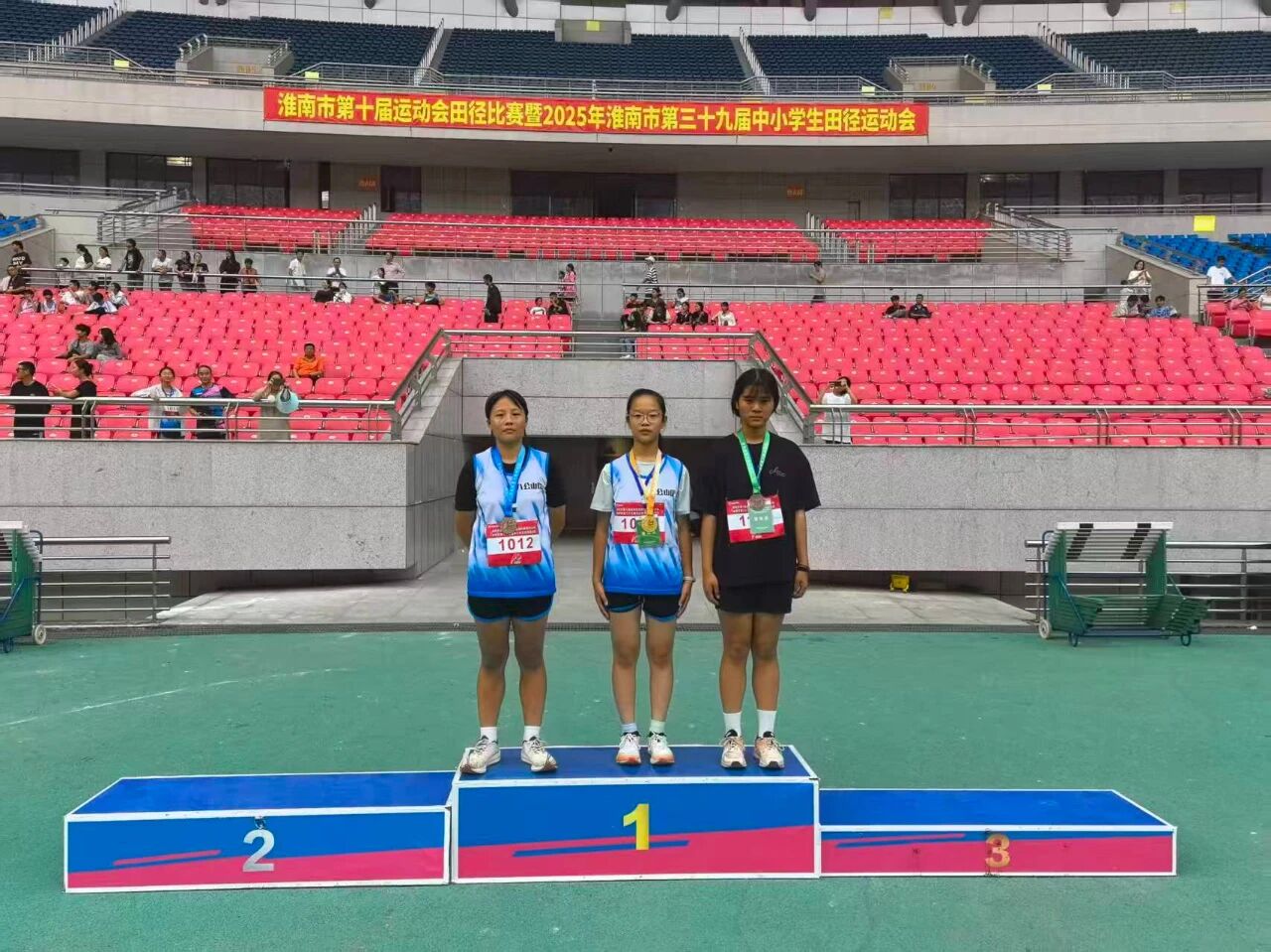 10月6日,在淮南市第十届运动会田径比赛暨2025年淮南市第39届中小学生田径运动会标枪比赛中,八公山区第一中学选手捷报频传。经过激烈角逐,沈思彤荣获女子初中组标枪冠军,常羽月荣获女子初中组标枪亚军,杜亦轩荣获男子初中组标枪第5名,实现历史性突破。