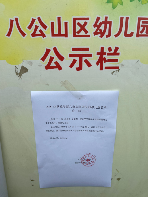 2023年秋季学期困难儿童名单公示