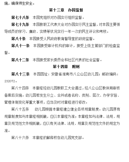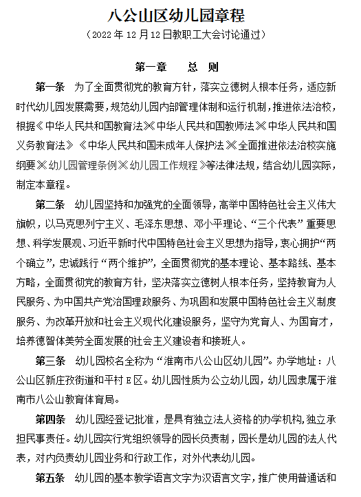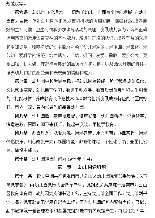 淮南市八公山区幼儿园章程(包含幼儿管理、教师管理、财务管理、教育管理等)