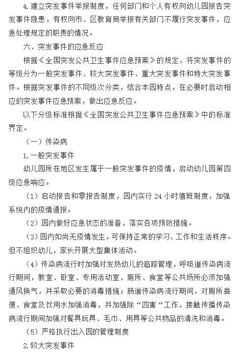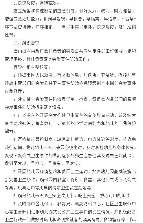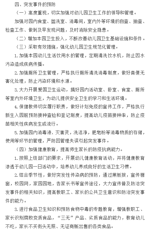八公山区幼儿园公共卫生突发事件的应急预案
