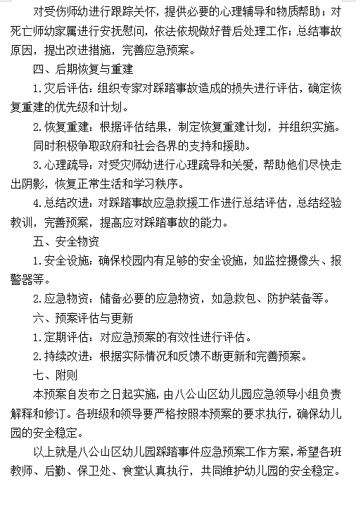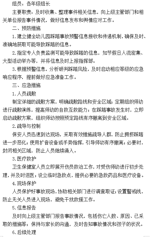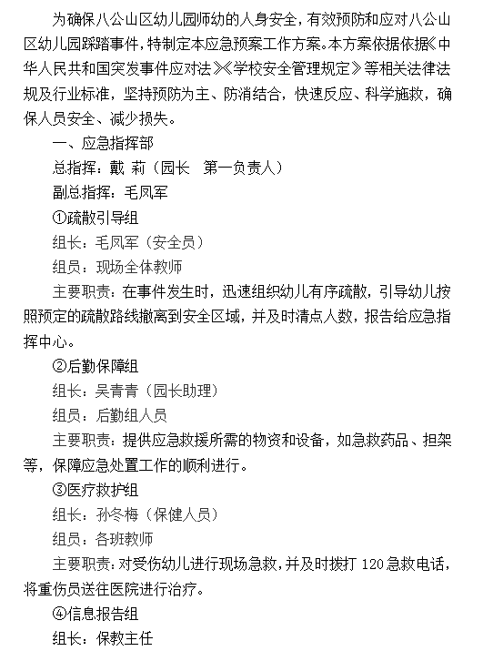 八公山区幼儿园踩踏事件应急预案
