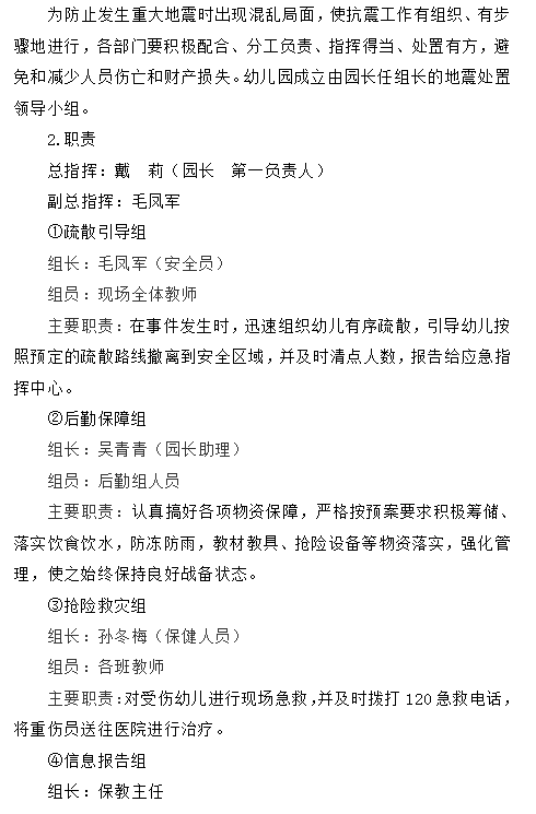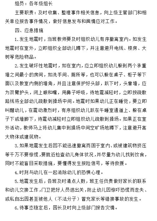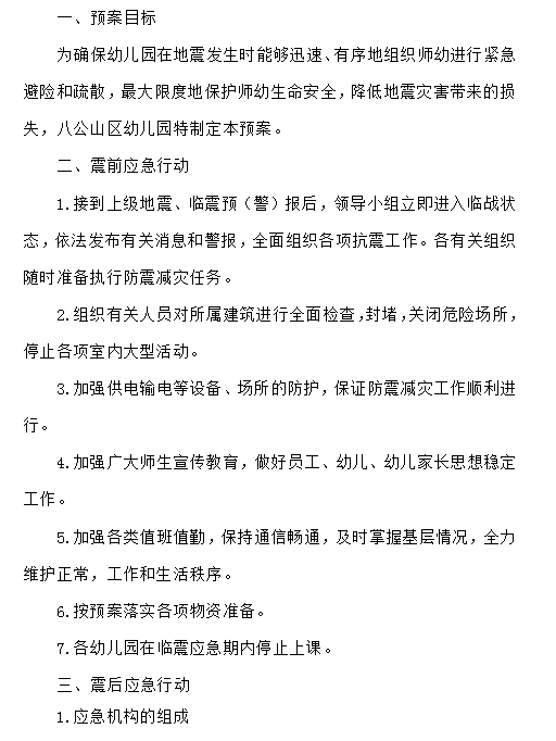八公山区幼儿园地震应急预案