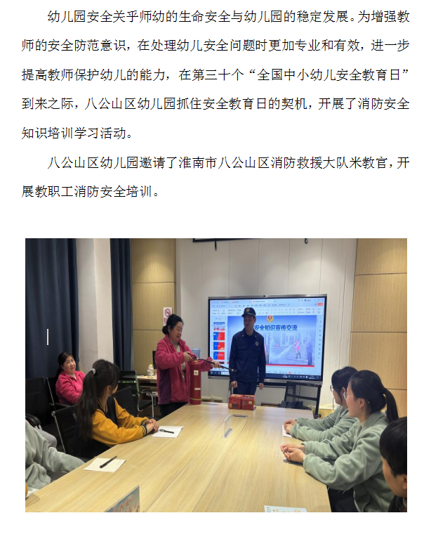 “幼”见安全日携手伴“童”行 ——八公山区幼儿园开展消防安全知识培训学习