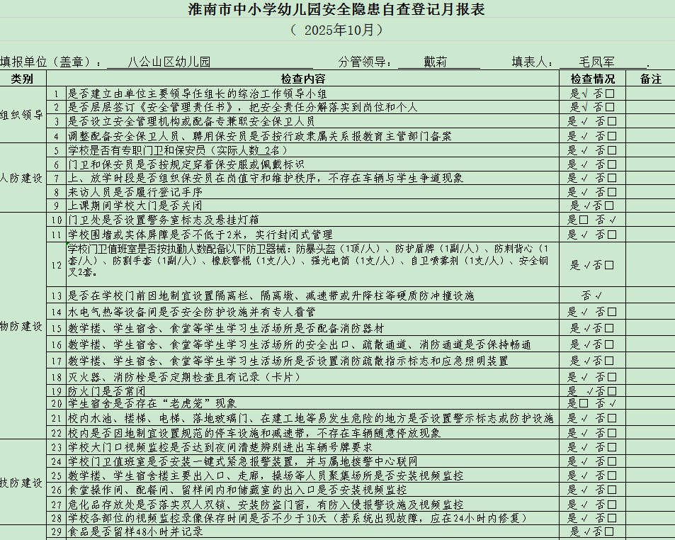 2025年10月安全隐患自查登记月报表