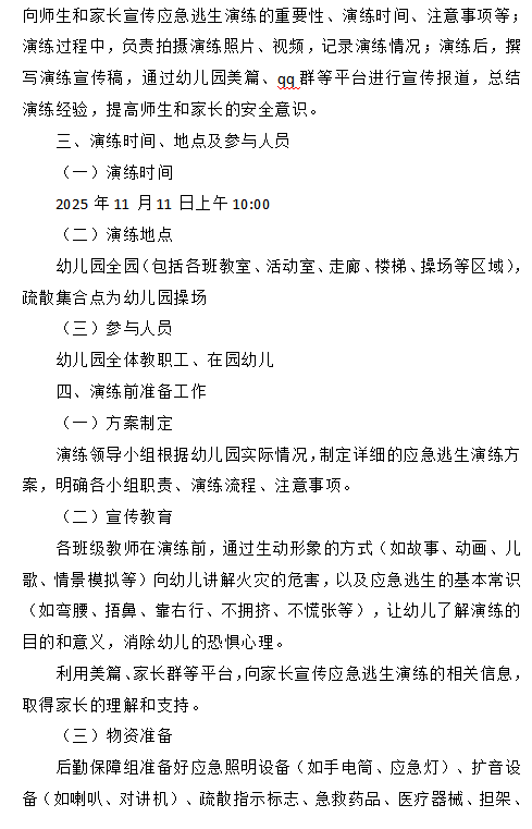 2025.11.11八公山区幼儿园消防应急逃生演练方案