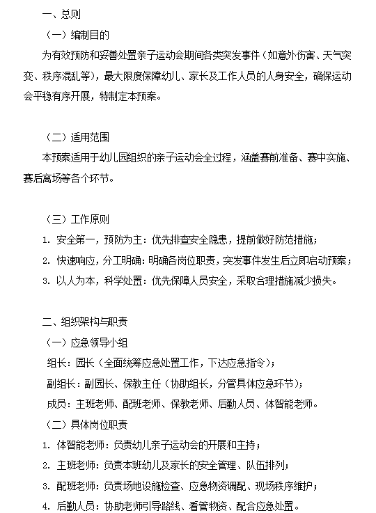2025.11.16幼儿园亲子运动会突发事件应急预案