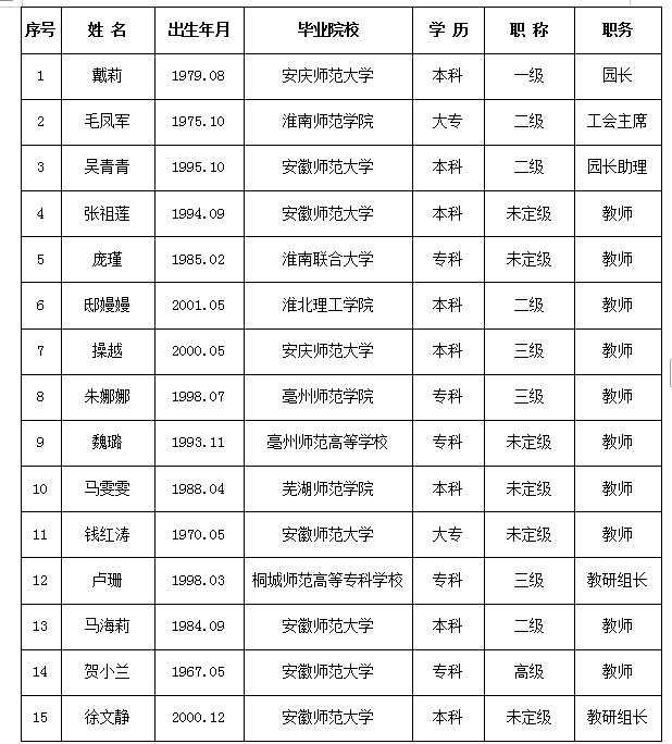 八公山区幼儿园教职工情况介绍