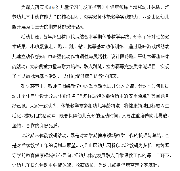 体能教研促成长健康领域深践行——八区幼儿园开展体能教研活动