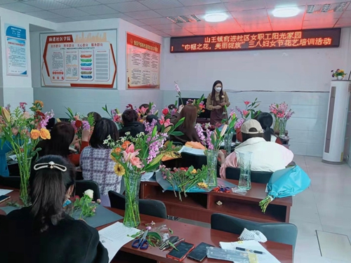 山王镇前进社区开展“巾帼之花,美丽绽放”花艺培训活动
