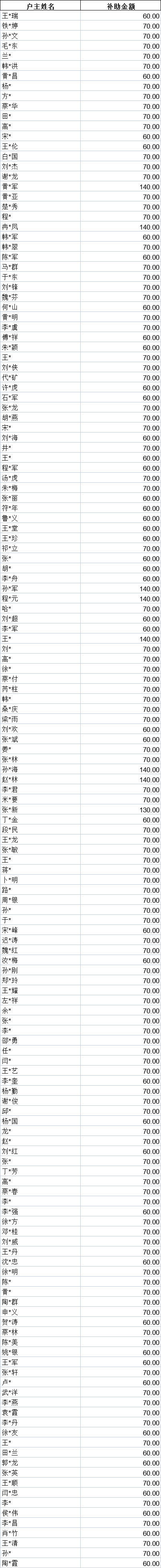 毕家岗街道2022年6月困难残疾人生活补助清册表