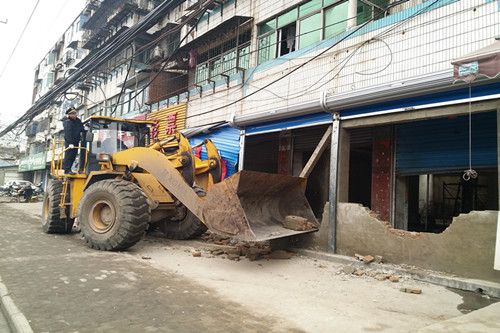 区城管执法局执法人员在春节后周末值班巡查发现,位于四马路西侧、商业街东门南侧1家店面正在违规进行廊檐砌砖外扩,违法建设共3间约20平方米。执法人员当场要求当事人立即停工,并自行拆除违法扩建。对于当事人不愿意配合管理的情况,期间,执法人员多次上门做当事人思想工作,督促当事人自拆,但当事人仍未整改,并继续偷建直至3个卷闸门安装到位、主体完工。针对当事人的侥幸心理,区城管执法局会同新庄孜街道,出动铲车1台,克服周边空中线缆离地面高度低、机械不易进入作业区的困难,对该处违法建设进行集中拆除,始终保持了对违法建设整治的高压态势。