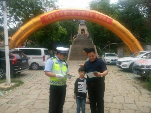当日上午,在八公山地质公园北门广场举行了“龙华庙会”的“甘露禅茶”首发式和捐资助学现场捐助仪式。为确保庙会期间交通安全畅通,提高群众交通安全意识,八公山交警大队的交警积极采取措施对景区道路进行巡逻管控,指挥车辆停入停车场,疏导交通,劝导车辆不要在景区主干道路上停放,防止交通堵塞和踩踏事故发生。在活动现场,执勤民警积极开展交通安全宣传活动,通过摆放交通安全宣传展板、散发单页宣传材料、设置交通安全咨询台、交通安全知识有奖问答等形式,对广大群众进行交通安全教育,营造了“关爱生命,平安出行”的交通安全宣传氛围。