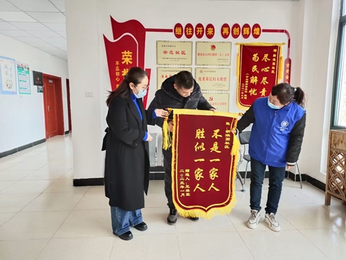 “我们平时工作都比较忙碌,没有时间经常去探望老人家,还是要感谢社区,在疫情以及新年期间能够时常惦记着老人,时常上门看望老人,关心老人身体,替我们儿女在老人身边尽一份孝道!”王先生手握锦旗,激动地向社区书记表达了感激之情。
