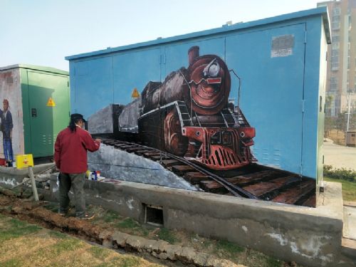 变电箱上绘画 扮靓美丽游园