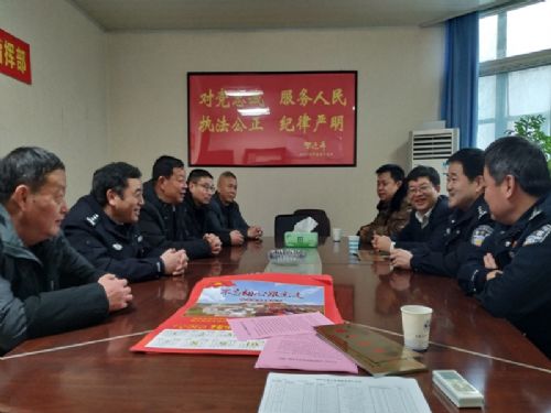 为营造尊军、爱军、拥军的社会氛围,传递党和政府对退役军人的关怀,1月30日上午,新庄孜街道党工委书记胡汪兴率队来到八公山公安分局,与该局新庄孜街道籍军转干部举行座谈慰问,送去“光荣之家”牌匾。公安分局军转干部郁树成等五位警官参加座谈会,公安分局党委副书记、政委王正国,党委委员、政治处主任吴清好出席座谈会。
