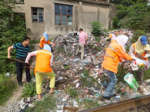 区环卫处延伸保洁范围 清理铁路两侧暴露垃圾