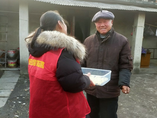 走访中,社区工作人员亲切地和老人们进行交心交谈,了解他们的日常生活、思想状况,为其送上亲手包的水饺,叮嘱老人要注意饮食,天气寒冷及时增添衣物,保重身体,有困难第一时间向社区反映。慰问活动中,87岁的姜师傅激动地说:“感谢社区的关心和关爱,时不时来看望我们,有你们在我们的生活真的是越来越好。”
